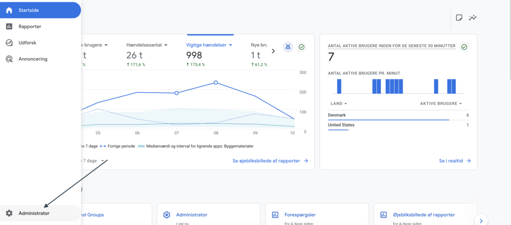 Gå til Administrator i din GA4 konto.