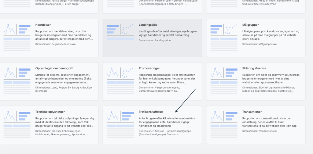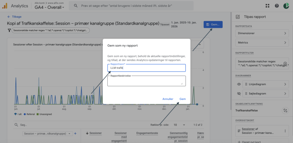 Du vil ny under rapporter kunne se din rapport og følge med i, hvor meget trafik du får for specifikke LLM’er.